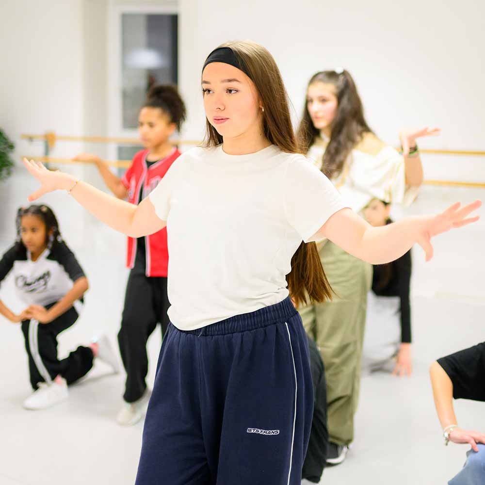Im Hip-Hop Unterricht lernst du verschiedene Urban Dance Styles wie Old School, New School, Popping, Locking und Freestyle kennen. Die Inhalte sind altersgerecht aufgebaut und helfen dir, Technik, Rhythmus und Stil sicher zu entwickeln. Dabei entsteht Raum für deinen eigenen Flow und Ausdruck.